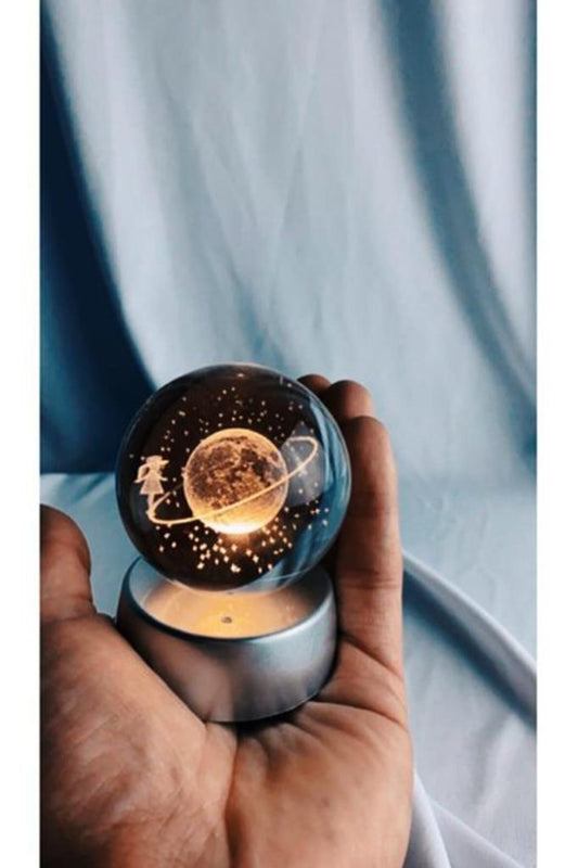 (KIRILABİLİR) 2'li Set Gezegen Cam Küre Işıklı 3D Led Işık Dekoratif Hediyelik + Satürn Kız Işıklı 3D Renkli LED Işıklı Küre Dekoratif Hediyelik