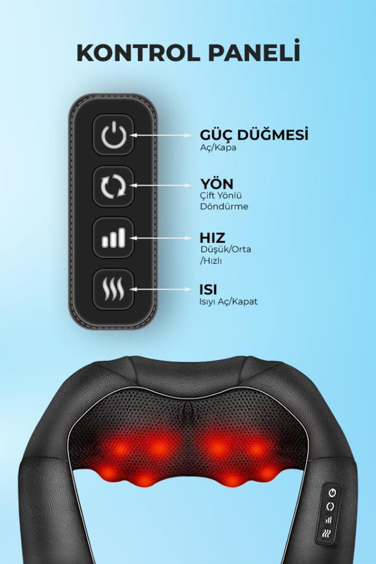 DP-76 Siyah Renk Kollu Isı Özellikli Boyun Masaj Yastığı Boyundan Asmalı El Ekleme Detaylı