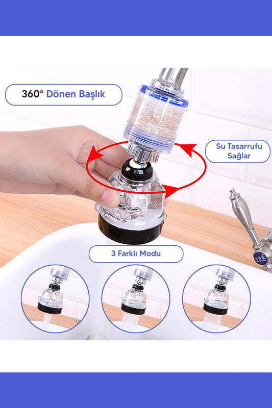 Filtreli 360 Derece Döner Tasarruflu Oynar Başlıklı Musluk Başlığı