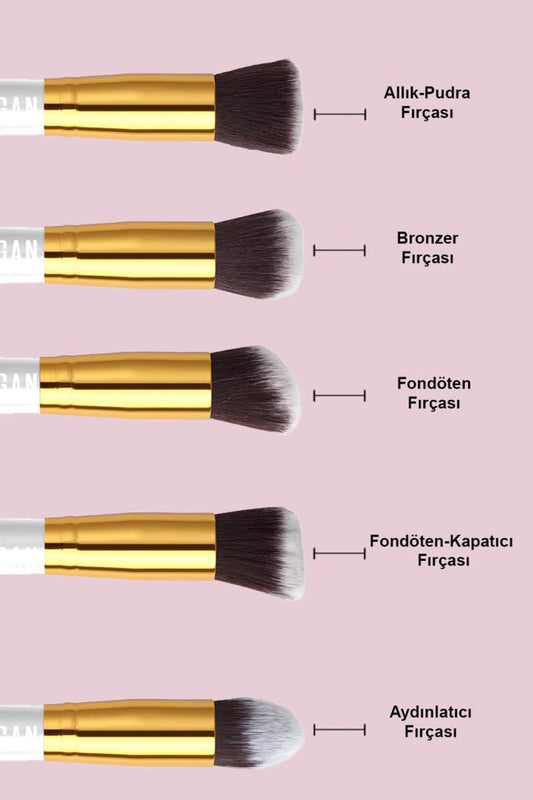 Kalın 5'li Makyaj Fırçası Beyaz Renk