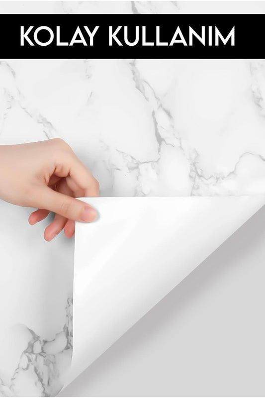 Raf Örtüsü Çekme Dolap İçi Kaplama Mermer Desenli Beyaz Rulo 5 Metre
