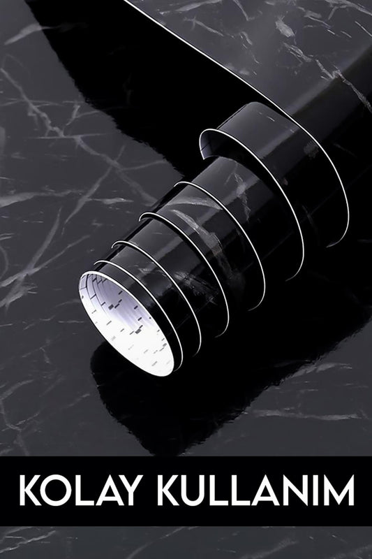 Raf Örtüsü Çekme Dolap İçi Kaplama Mermer Desenli Siyah Rulo 5 Metre