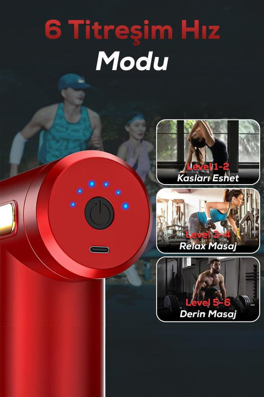 Titreşimli Masaj Tabancası 4 Başlıklı Kırmızı