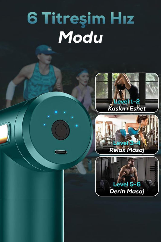 Titreşimli Masaj Tabancası 4 Başlıklı Siyah