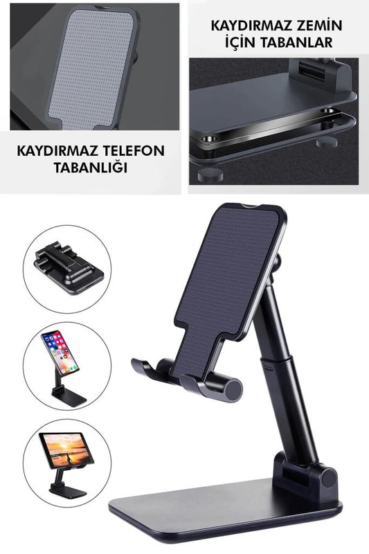 Siyah Renk Ayarlanabilir Portatif Standlı Telefon + Tablet Tutacağı