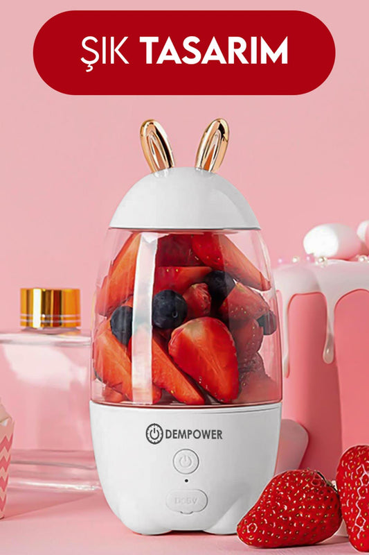 Tavşan Kulak Tasarımlı Şarjlı El Blenderı Karıştırıcı Shaker Beyaz