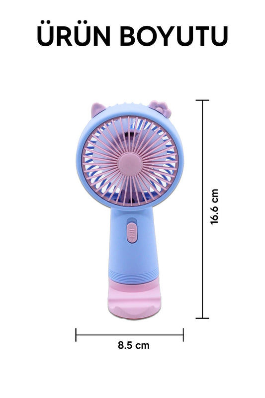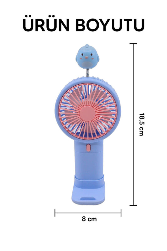 Şarjlı ve Başlıklı Masaüstü Vantilatörü El Fanı Mavi