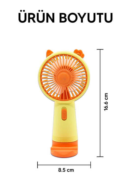 Şarjlı ve Başlıklı Masaüstü Vantilatörü El Fanı Sarı