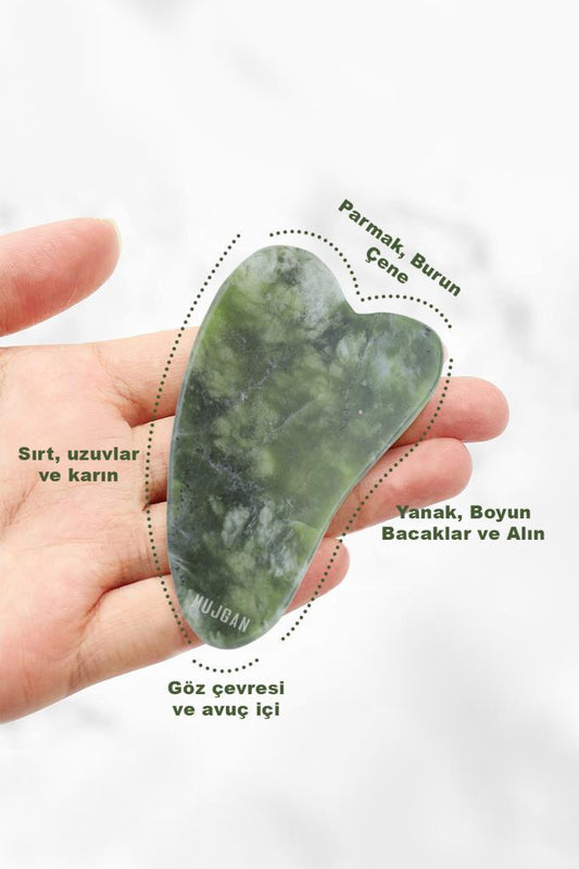 (KIRILABİLİR) 2'li Set Yeşim Taşı + Gua Sha Masaj Taşı