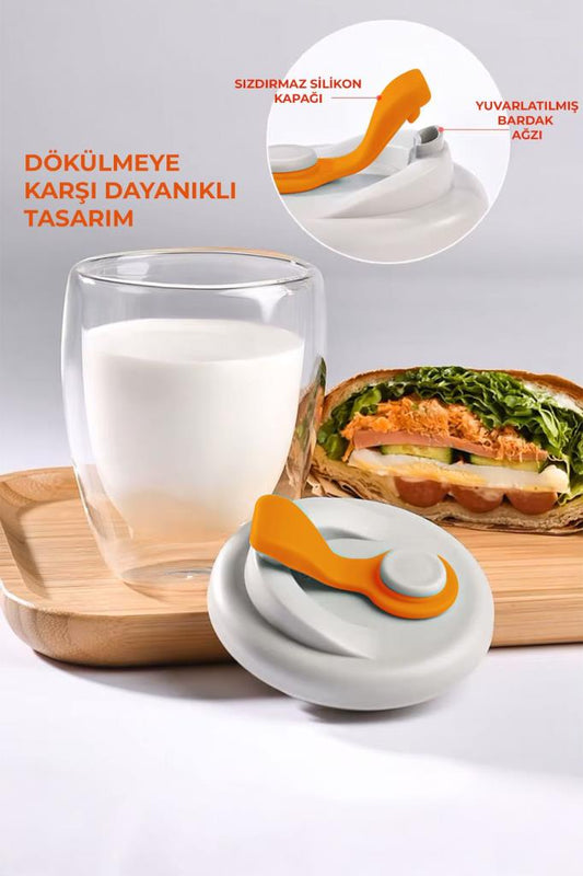 Çift Katmanlı Borosilikat Cam Termos Kapaklı Bardak