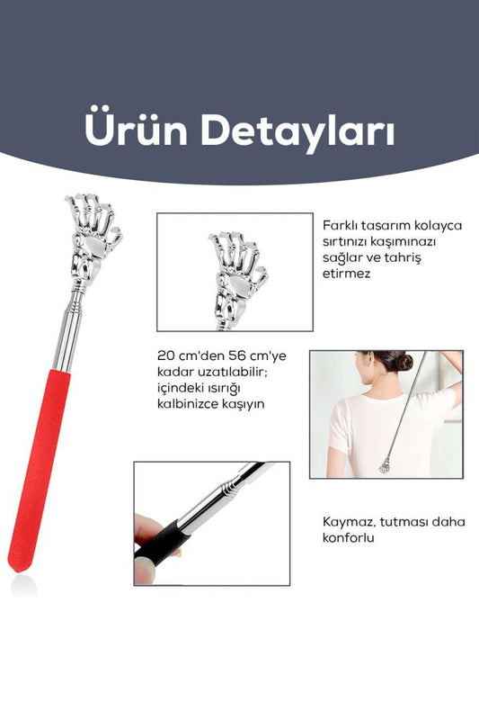 Metal El Şekilli Ayarlanabilir Sırt Kaşıma Çubuğu Kırmızı