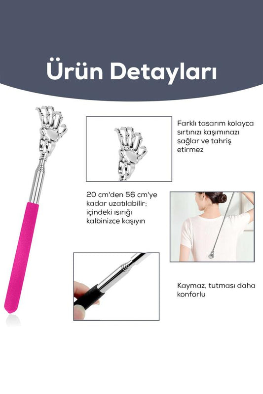 Metal El Şekilli Ayarlanabilir Sırt Kaşıma Çubuğu Pembe