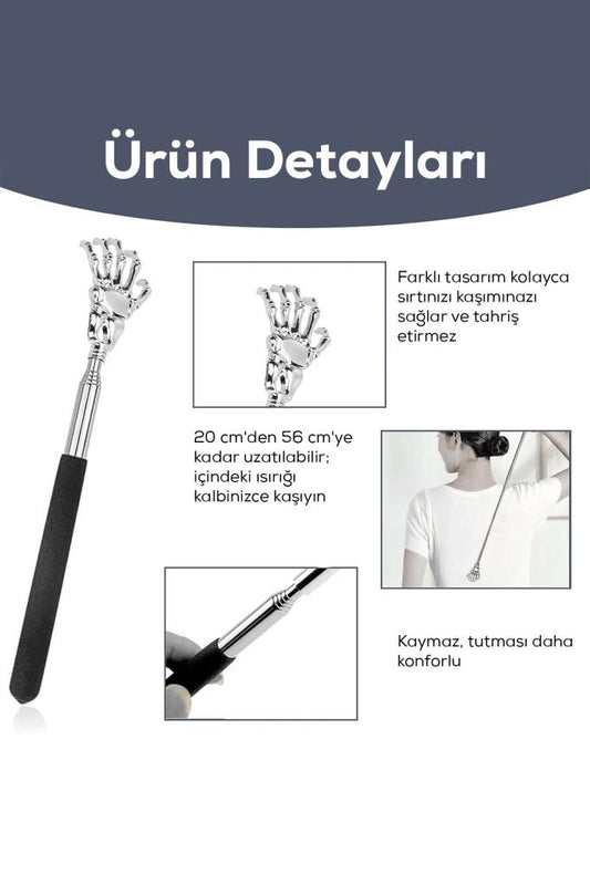 Metal El Şekilli Ayarlanabilir Sırt Kaşıma Çubuğu Siyah