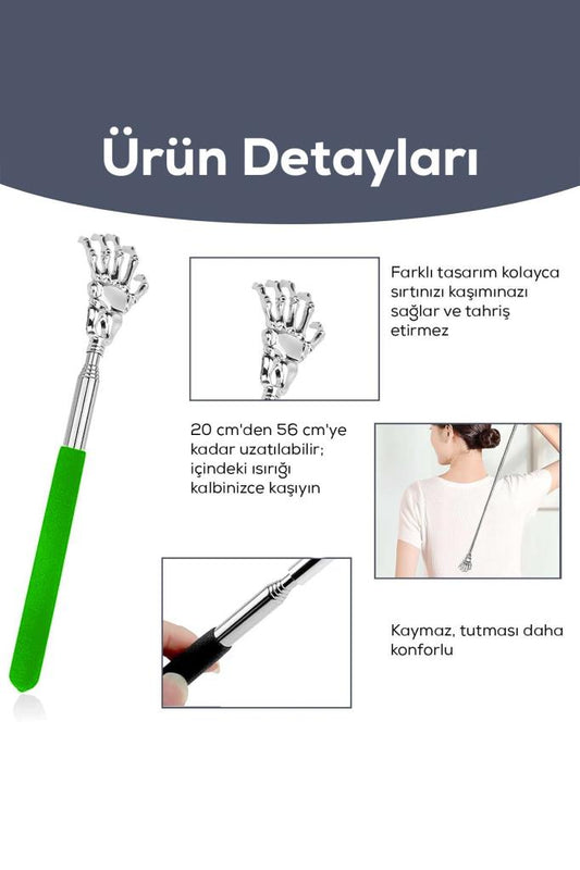 Metal El Şekilli Ayarlanabilir Sırt Kaşıma Çubuğu Yeşil