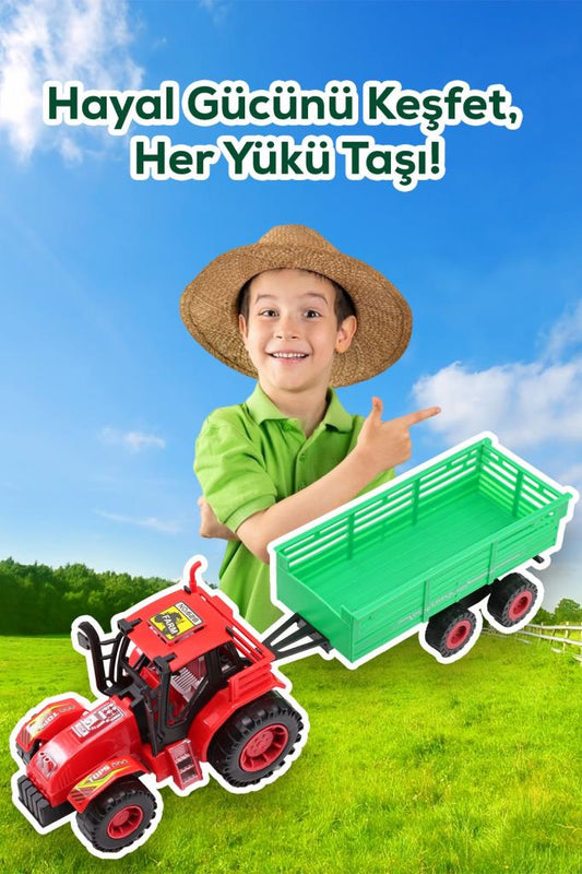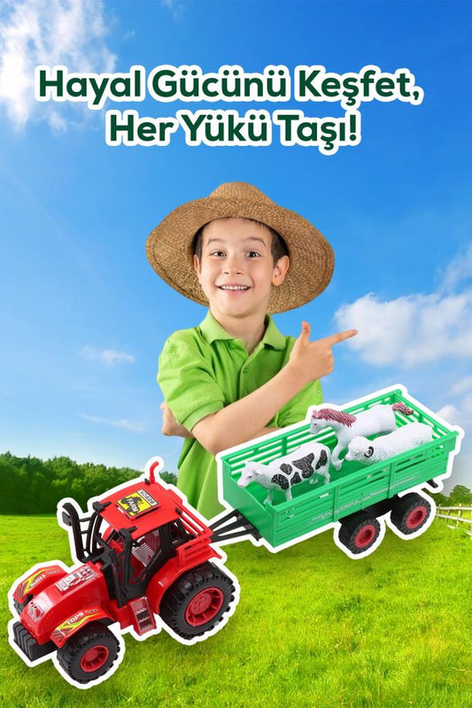 Römorklu Traktör Ve 3 Adet Hayvan Figürlü Oyuncak Seti