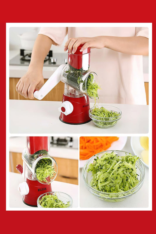 3 Aparatlı Vakumlu Sebze Meyve Doğrayıcı Kırmızı