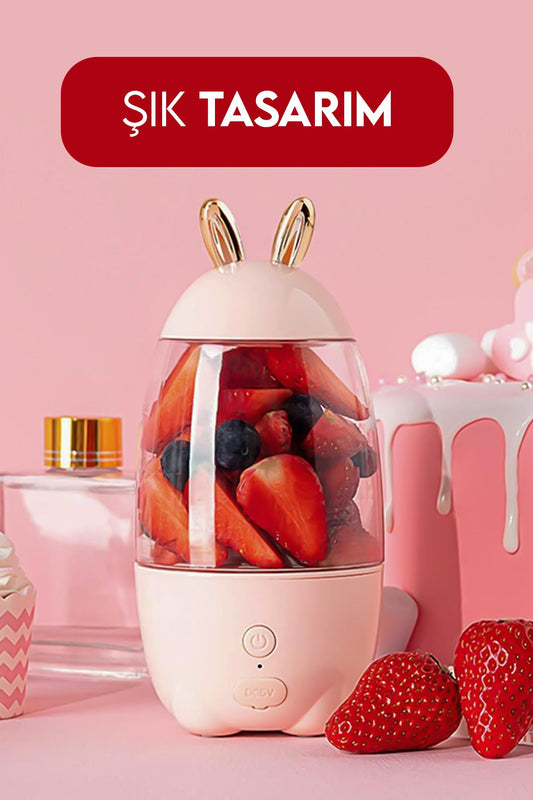 Tavşan Kulak Tasarımlı Şarjlı El Blenderı Karıştırıcı Shaker Pembe