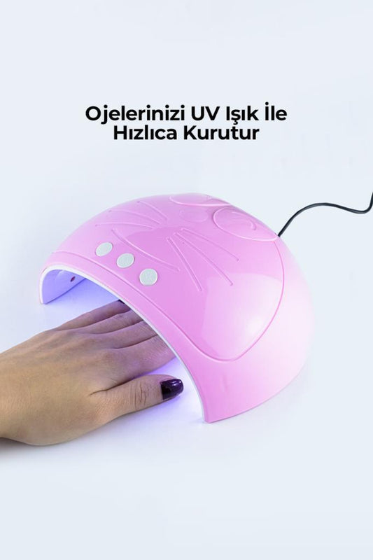 Sun3-15 Ultraviyole Işıklı Oje Kurutucu Makine Kedi Baskılı Pembe