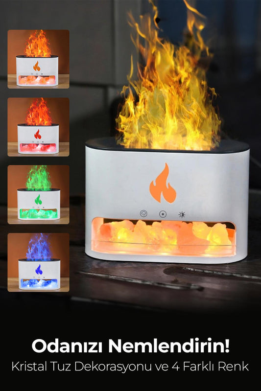 Şömine Hava Nemlendiricisi 4 Renkli Alevli ve Taşlı Buhar Makinesi Siyah