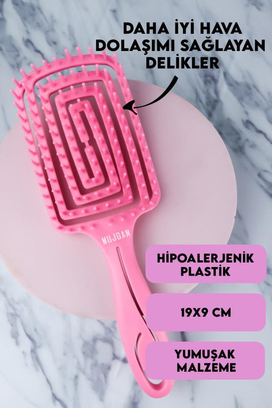 Kare Vegan Saç Açma Fırçası Pembe Renk