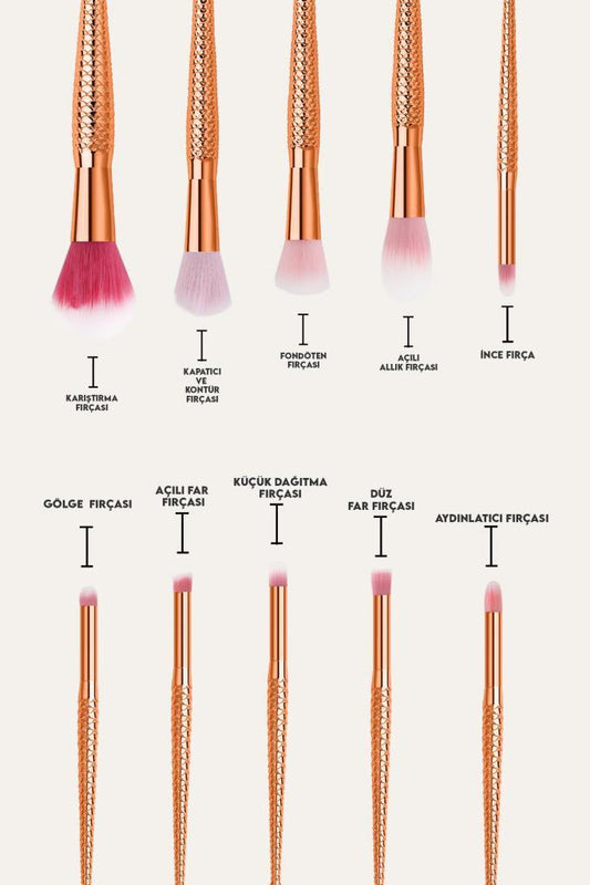 (KIRILABİLİR) 12'li Makyaj Fırça Seti Silindir Pembe