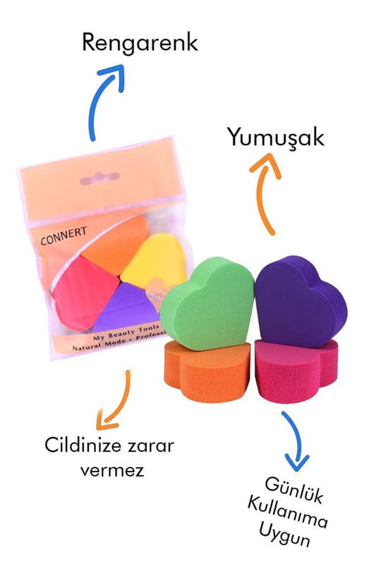 4'lü Kalp Şekilli Renkli Makyaj Süngeri