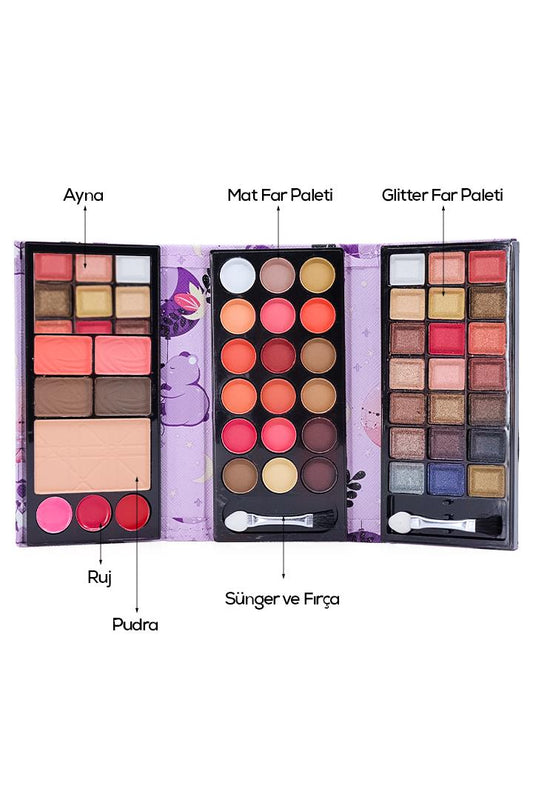 3 Katlı Cüzdan Far - Allık - Pudra Seti Ayıcık Desenli Mor