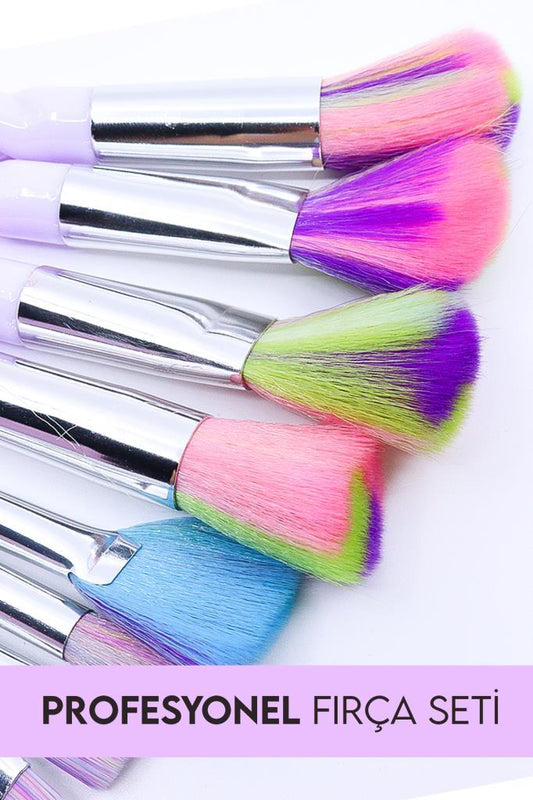 10'lu Makyaj Fırça Seti Örgü Sap Lila Renk