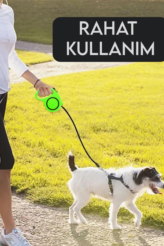 Makaralı Otomatik Köpek Tasması 3 Metre Yeşil