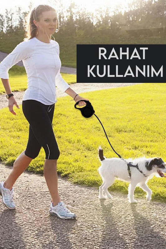 Makaralı Otomatik Köpek Tasması 5 Metre Siyah