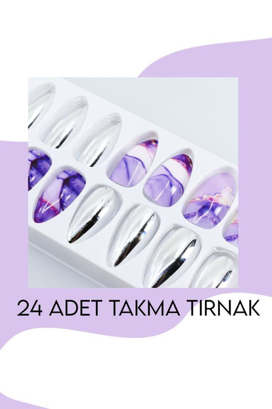 24'lü Parlak Mor-Gümüş Takma Tırnak T-85 F