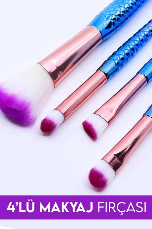 4'lü Balık Makyaj Fırça Seti Mor ve Mavi