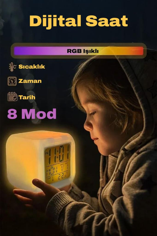 7 Renk Değiştiren Alarmlı Dijital Küp Çalar Saat