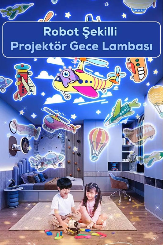 Robot Şekilli Müzikli Projektör Gece Lambası