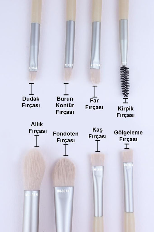 8'li Kiremit Renkli Fırça Bej Kılıflı Makyaj Fırça Seti