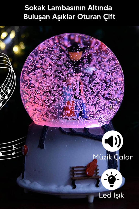Ahşap Tabanlı Sevgili Figürlü LED Işıklı Küre