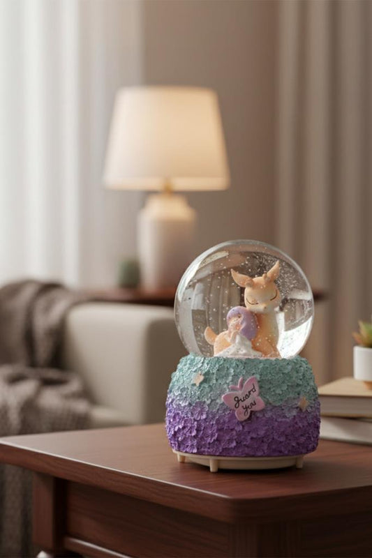 Kahverengi Ceylan Figürlü Müzikli LED Işıklı Kar Küresi