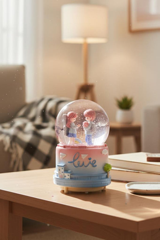 Sevgili Figürlü Müzikli LED Işıklı Kar Küresi