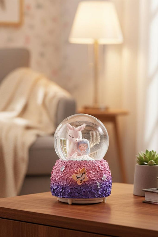 Beyaz Ceylan Figürlü Müzikli LED Işıklı Kar Küresi