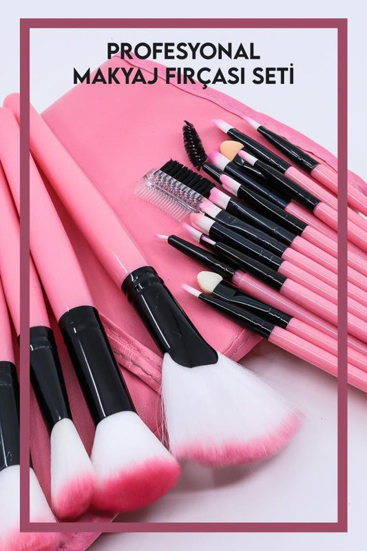 24'lü Profesyonel Makyaj Fırça Seti Pembe Renk