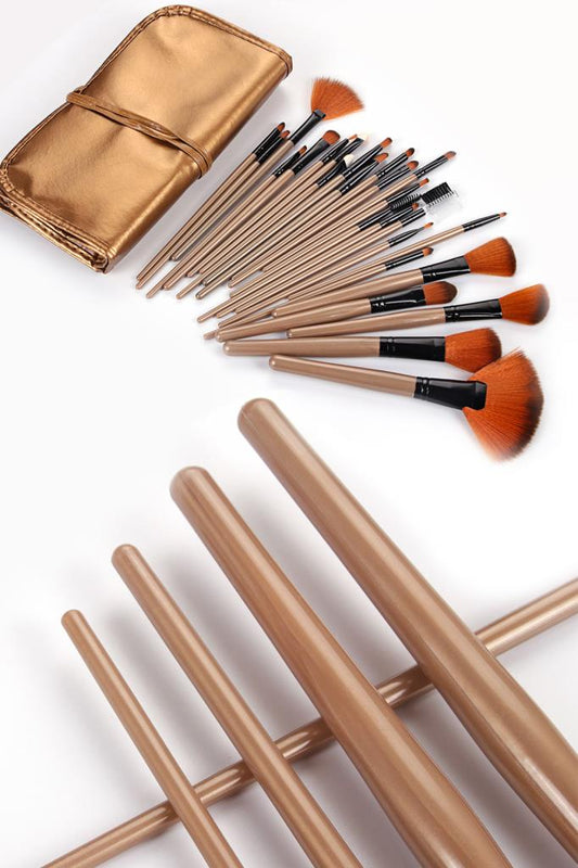 24'lü Taba Kahverengi Deri Çantalı Fırça Seti
