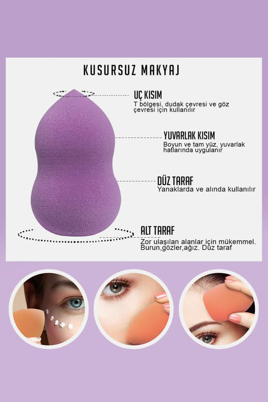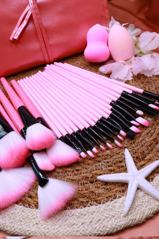 2'li Makyaj Fırçası Seti 24'lü Pembe Deri Çantalı Fırça Seti + 4'lü Armut Sünger Seti
