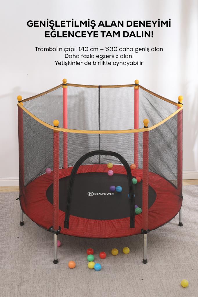 DEMPOWER 140 KG Taşıma Kapasiteli 120x140 cm Koruma Fileli Trambolin