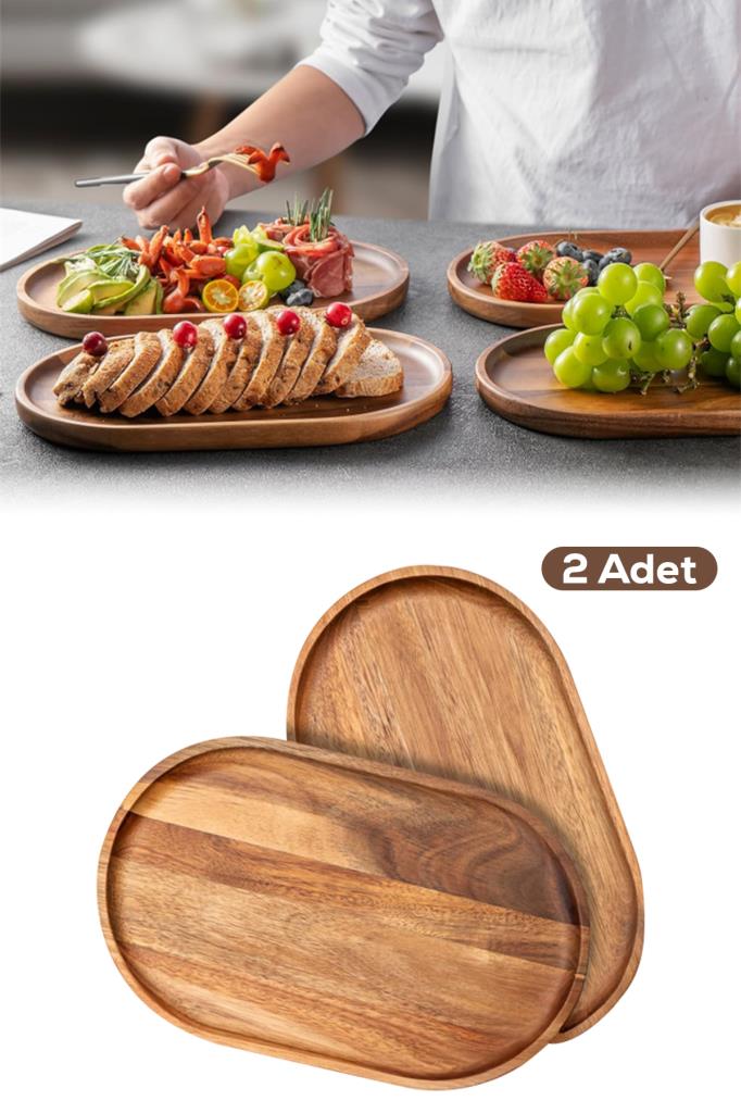 📦 Paket İçeriği: 2 Adet Ahşap Oval Sunum Tabağı