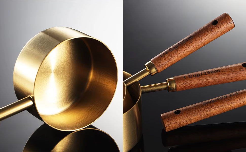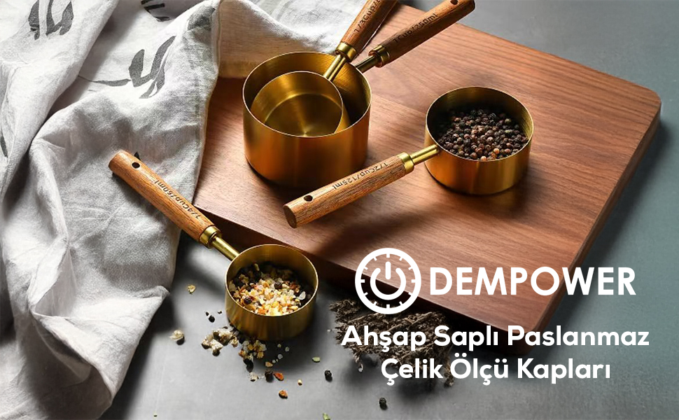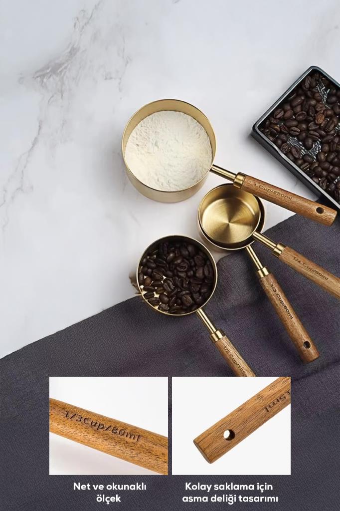 DEMPOWER 4’lü Ahşap Saplı Gold Paslanmaz Çelik Ölçü Kabı Seti