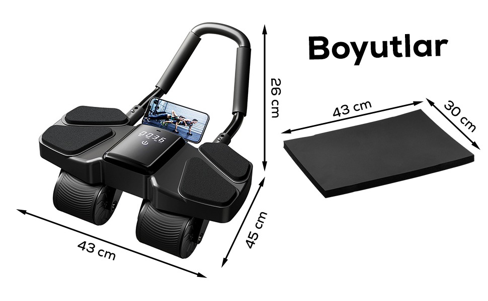 400 Kg Taşıma Kapasiteli, Dijital Ekranlı, Dirsek Destekli AB Roller Karın ve Bel Egzersiz Aleti
