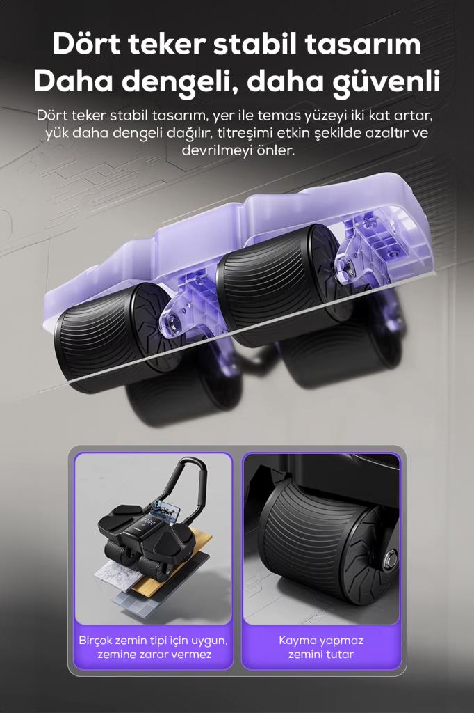 4 geniş tekerlekli stabil tasarım, daha dengeli ve güvenli bir kullanım sunar.