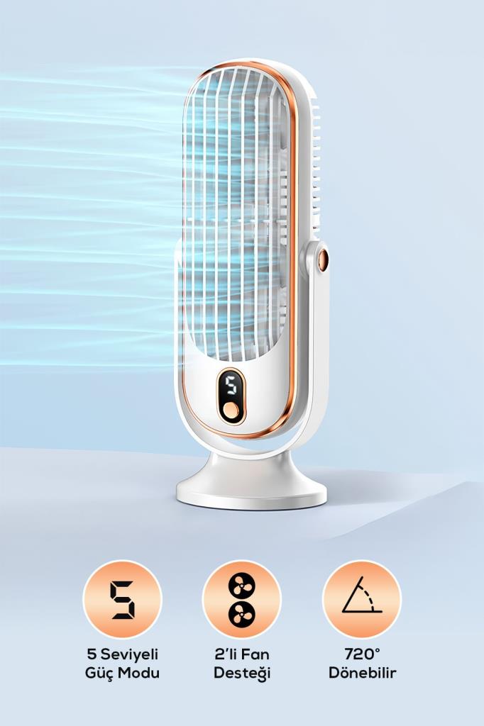 5 Kademeli Çift Fanlı Şarjlı Fan - 720° Dönebilir