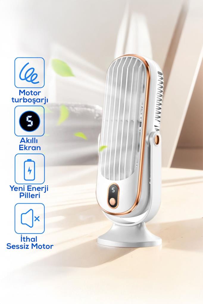 DEMPOWER 5 Kademeli Çift Fanlı Şarjlı Fan - 720° Dönebilir