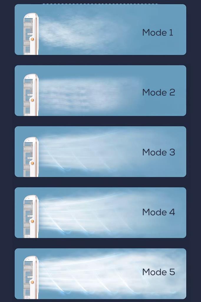 *Rüzgar şiddetini ihtiyacınıza göre ayarlayın! Doğal esinti modundan güçlü serinliğe kadar 5 farklı mod ile maksimum konfor sağlar.
